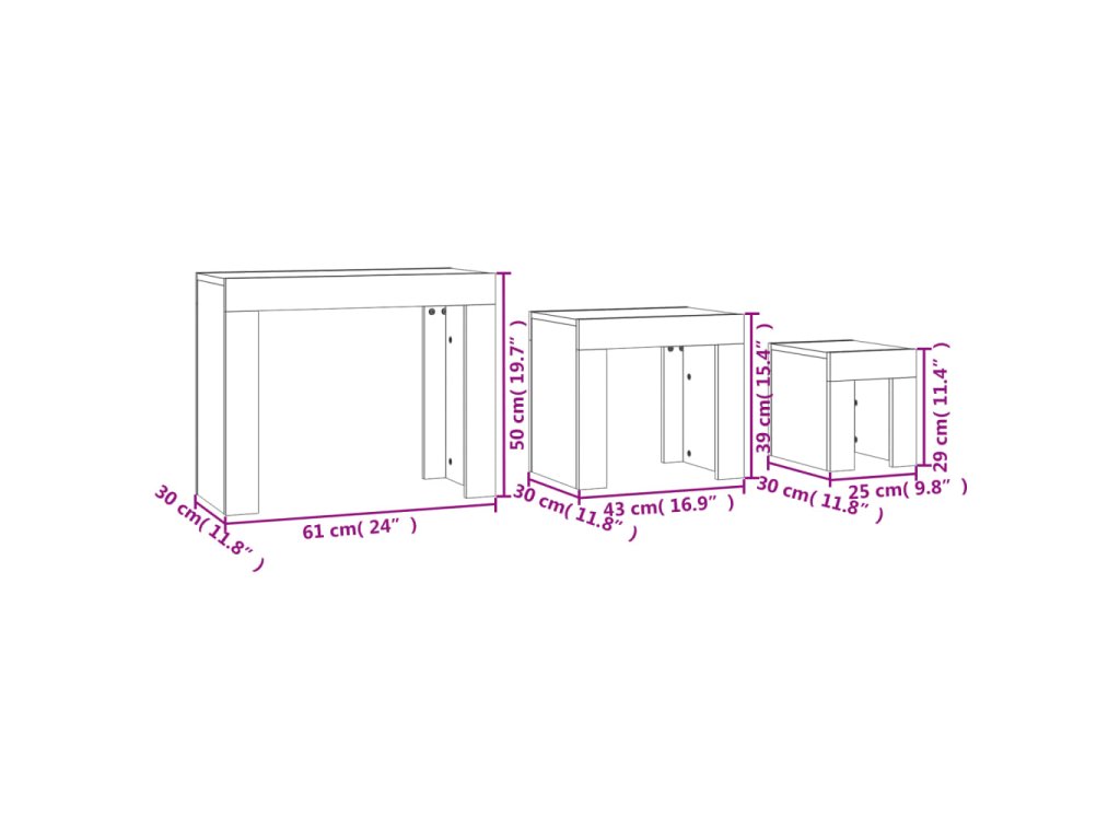 - Rozměry středního stolku: 43 x 30 x 39 cm (D x Š x V)