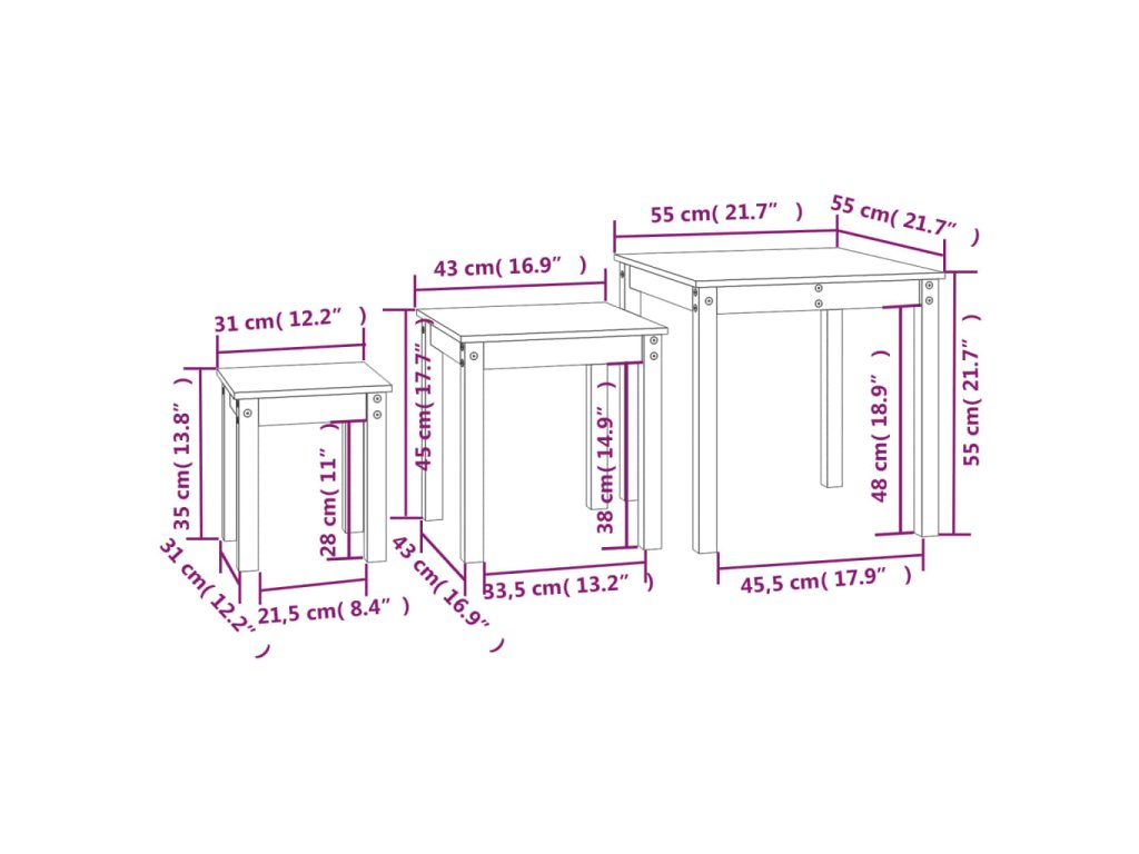 Tyto dřevěné hnízdové stolky jsou dokonalou alternativou do malých bytů nebo všude tam, kde je prostor trochu omezený. Se svým nadčasovým designem se stanou stylovým doplňkem vašeho obývacího pokoje či ložnice.