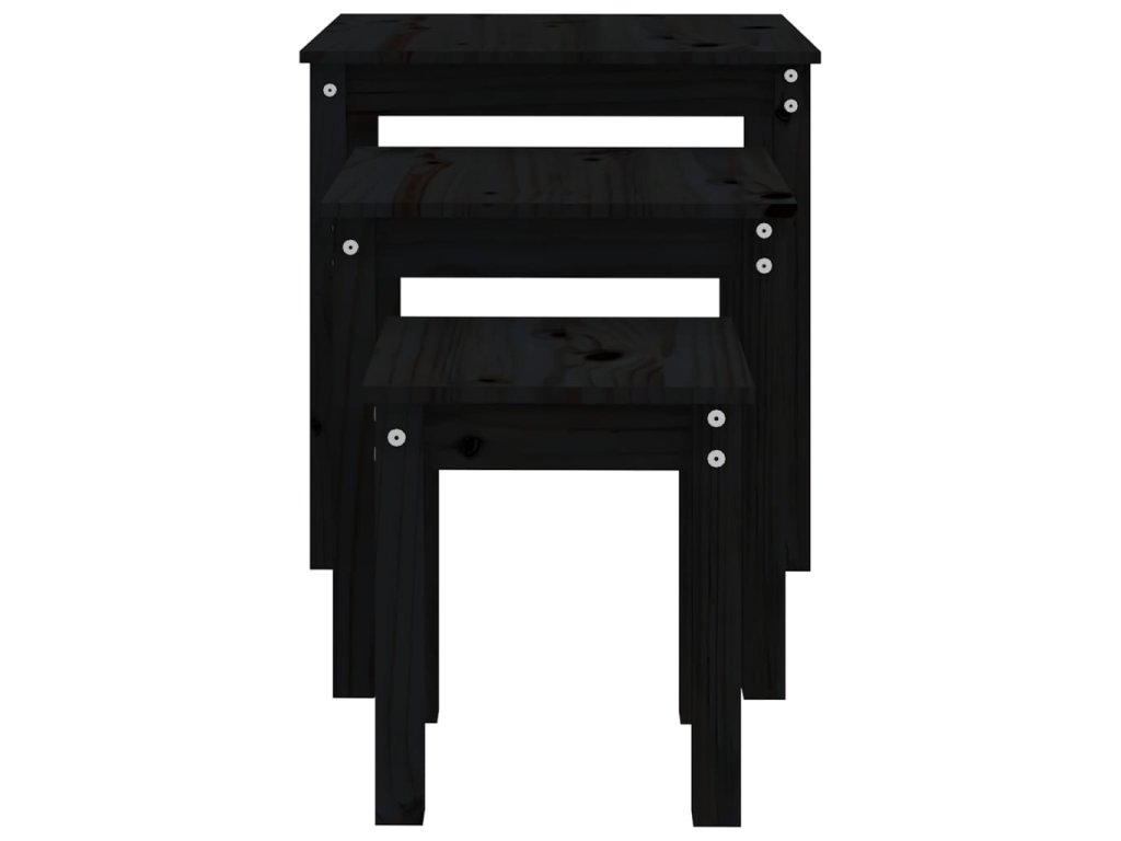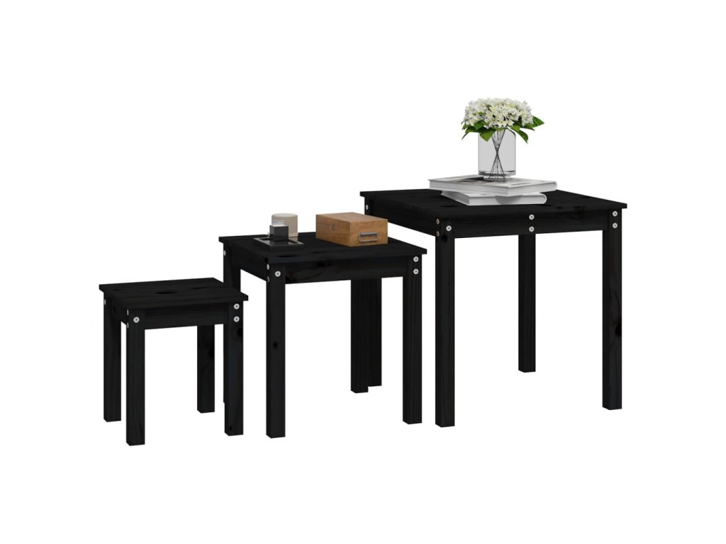 Hnízdové stolky 3 ks černé masivní borové dřevo