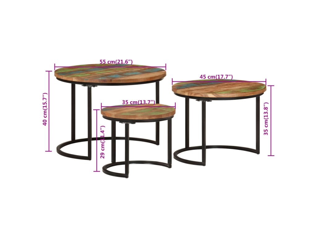 - Všestranné využití: Hnízdové stolky jsou všestranné! Každý z nich lze použít jako noční stolek v ložnici nebo jako odkládací stolek či stolek k pohovce v obývacím pokoji a kanceláři.
