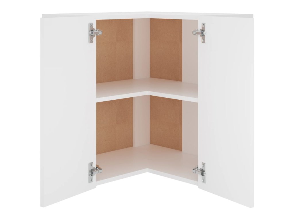 Závěsná rohová skříňka "Lyon" bílá 57 x 57 x 60 cm, dřevěné podlahy