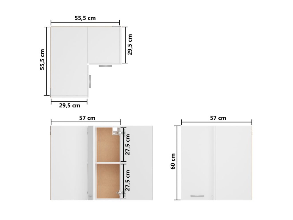 Tato horní rohová skříňka má jednoduchý design a pomůže vám optimálně využít místo v kuchyni. Poskytuje totiž spoustu úložného místa na vaše osobní věci!
