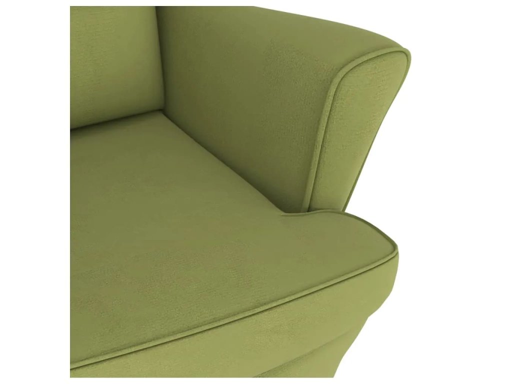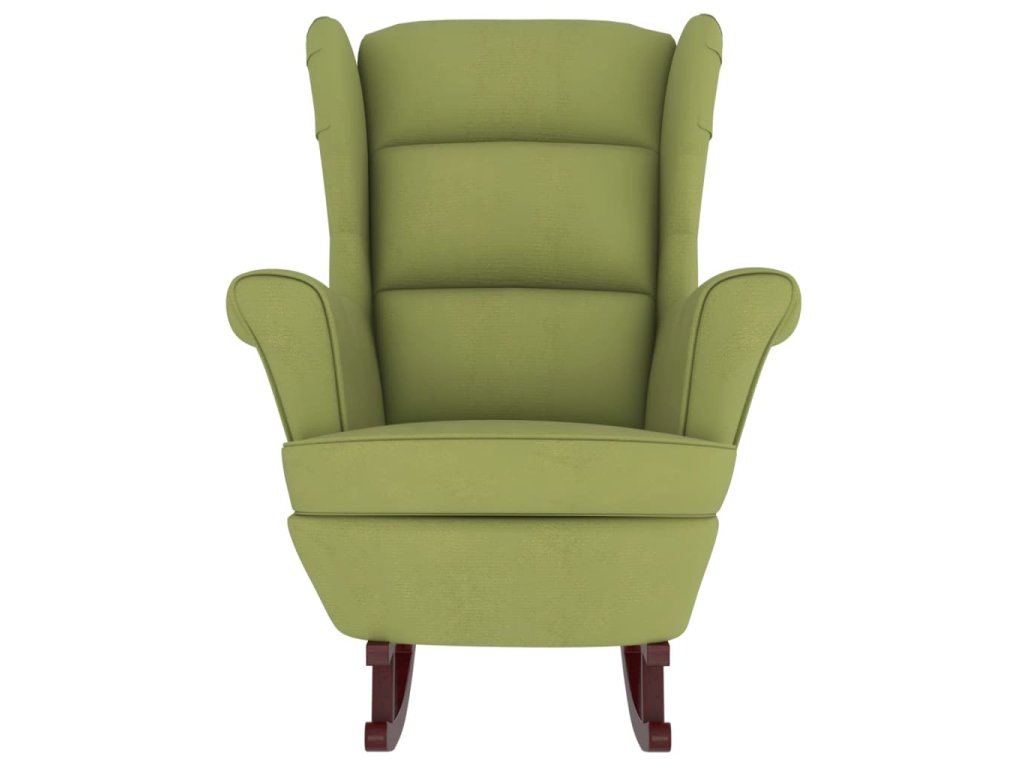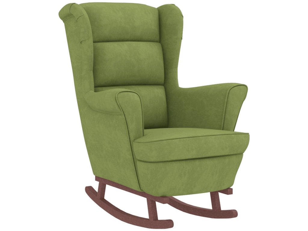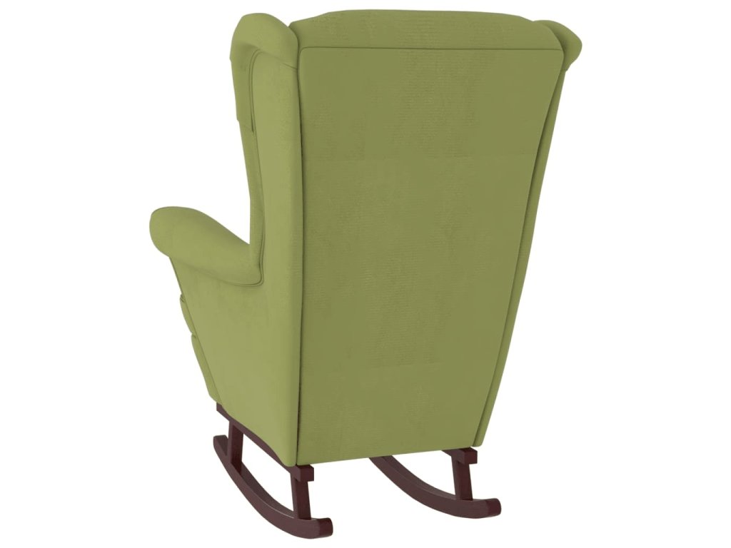 Houpací křeslo s opěradlem, světle zelený samet a masivní dřevo
