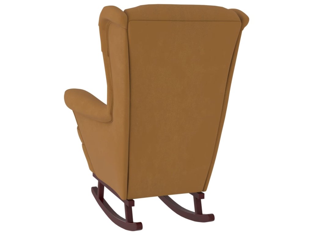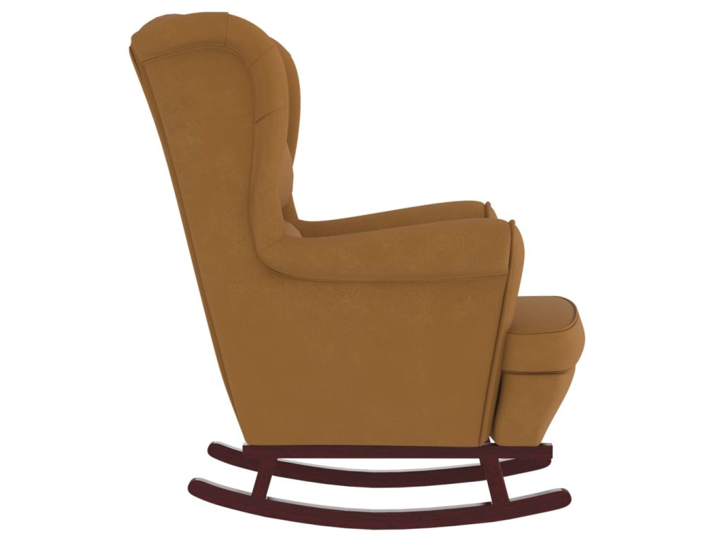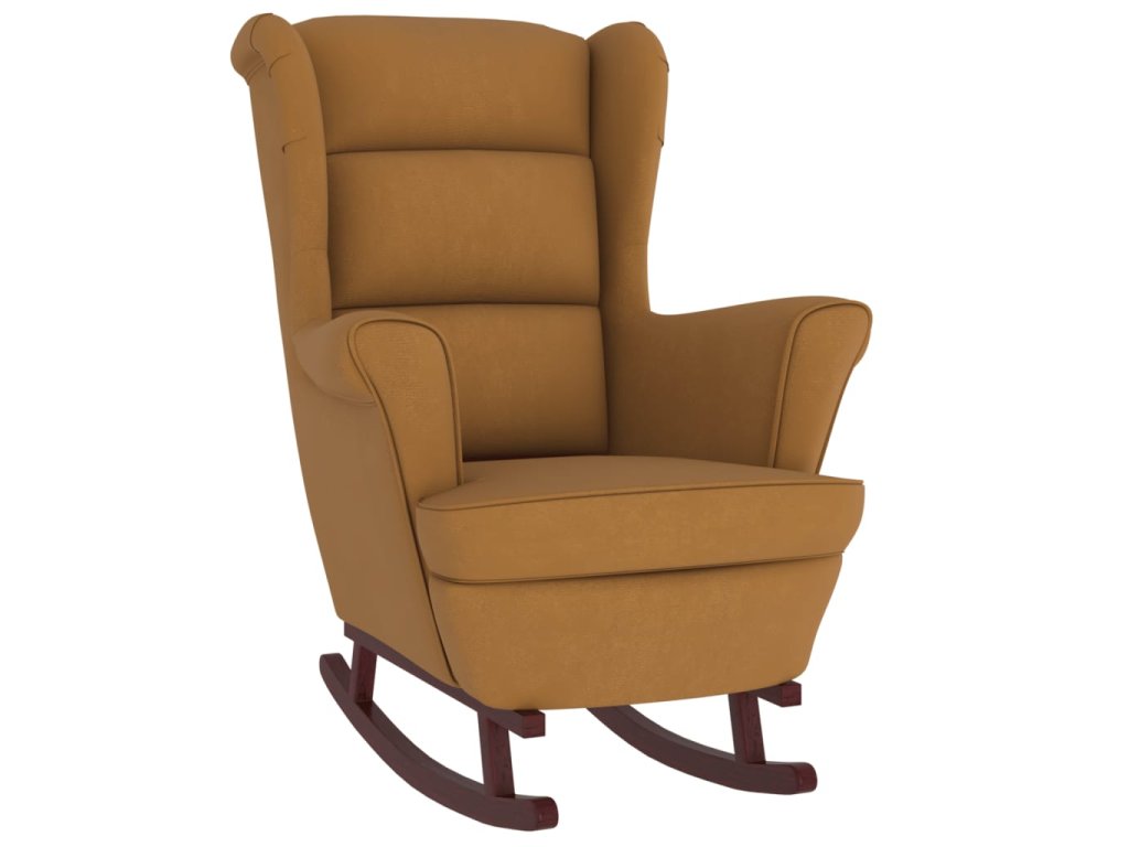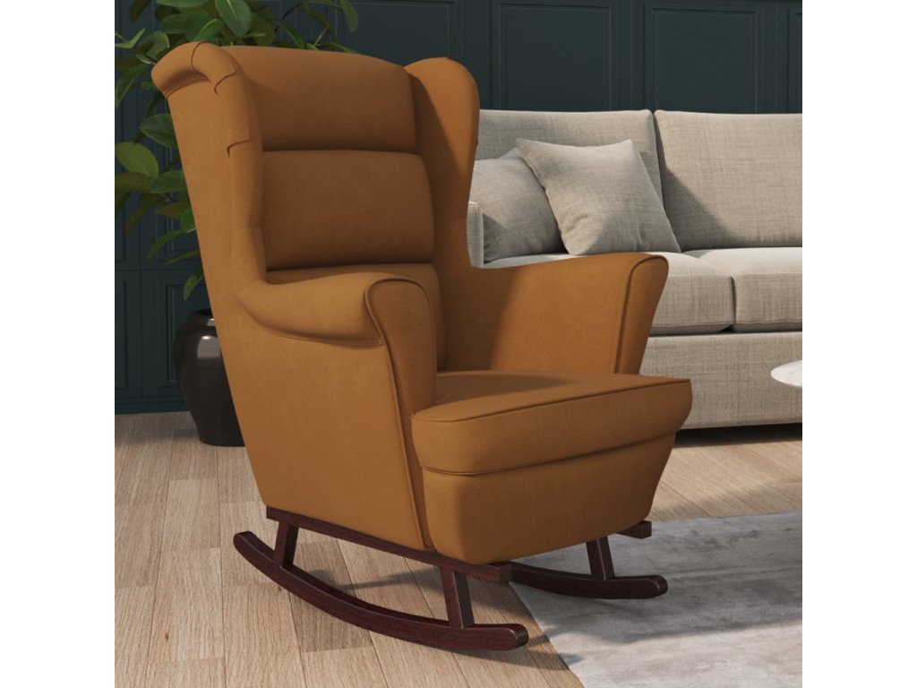 Houpací křeslo s opěradlem, hnědý samet a masivní dřevo