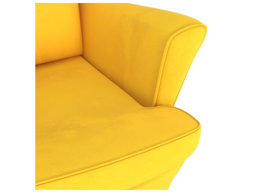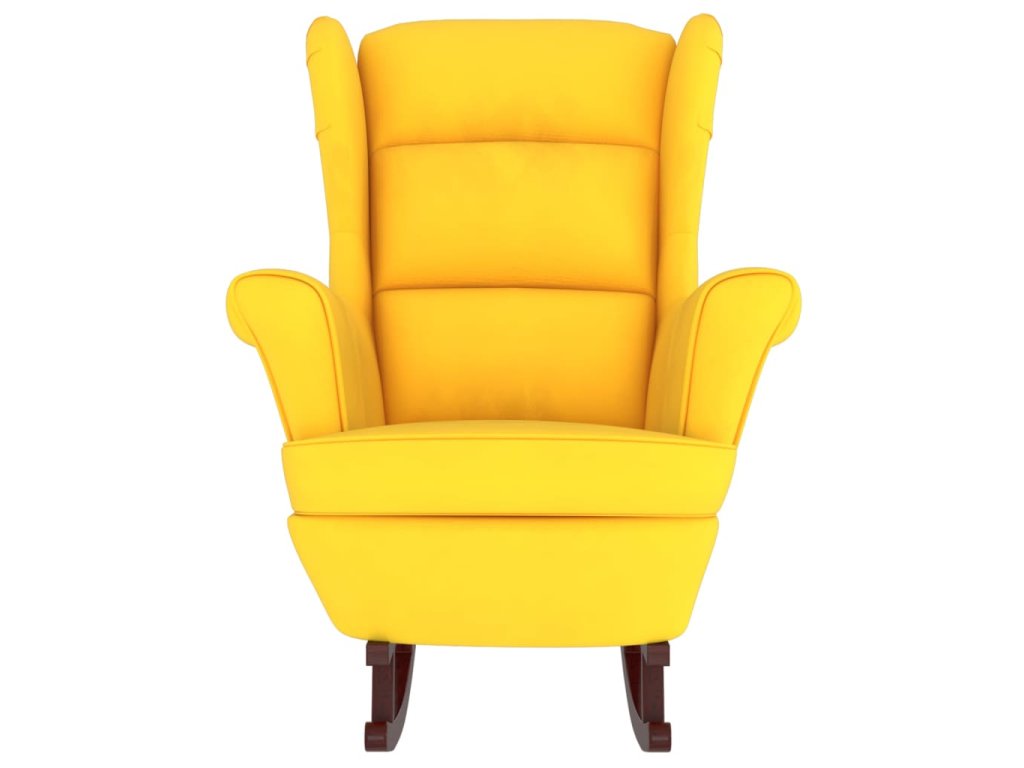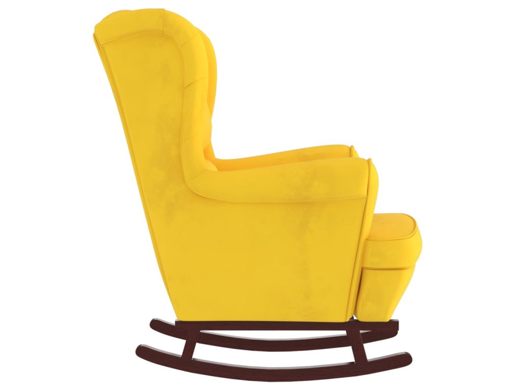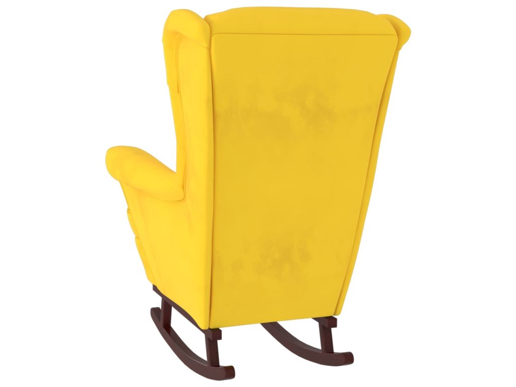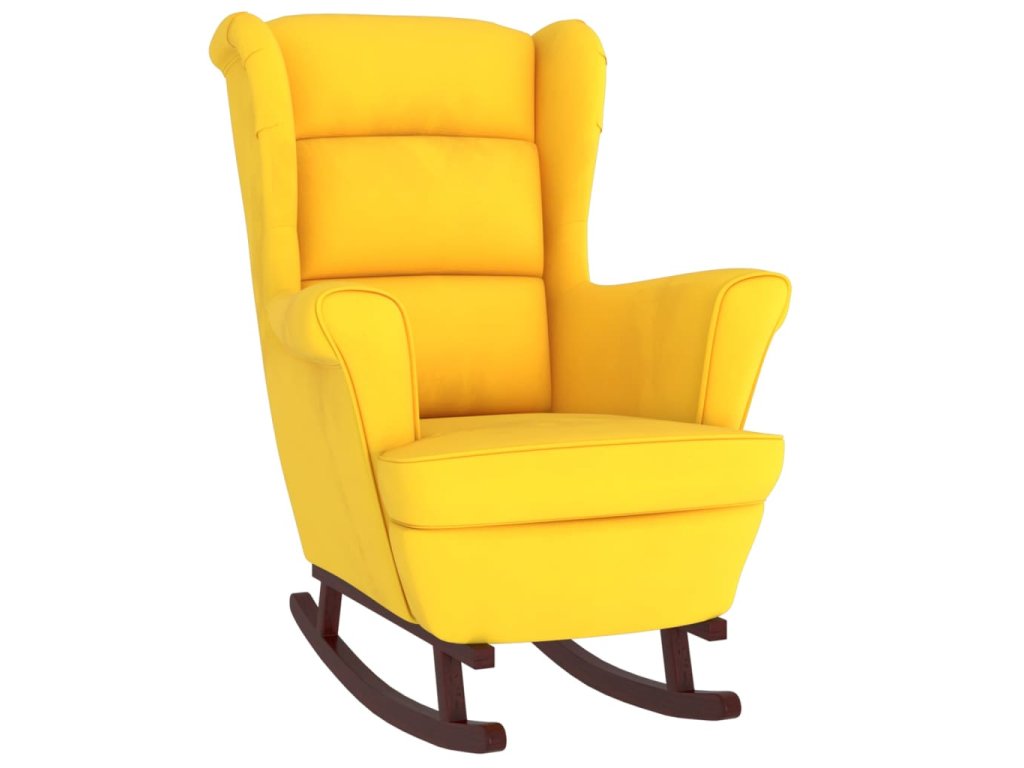 Houpací křeslo s opěradlem, žlutý samet a masivní dřevo