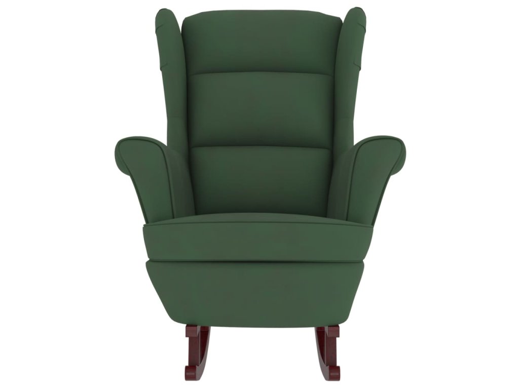 Houpací křeslo s opěradlem, tmavě zelený samet a masivní dřevo