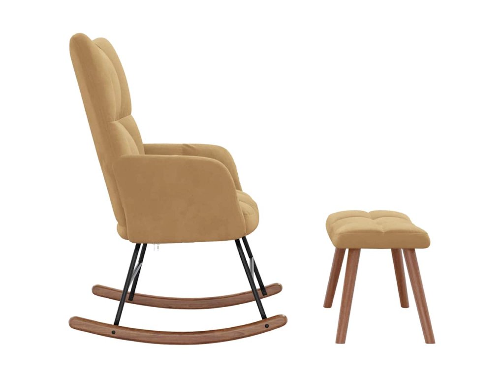 Toto relaxační křeslo s některými kostkami je esteticky příjemné. Díky silně polstrované pěně čalouněné měkkým sametem si můžete při sezení užívat optimálního pohodlí. Díky dlouhým houpacím lištám se křeslo snadno nepřevrátí. Navíc je křeslo s taburetkou stabilní a odolné, podepřené ocelovým rámem a nohami spolu s dřevěnými houpacími lištami.