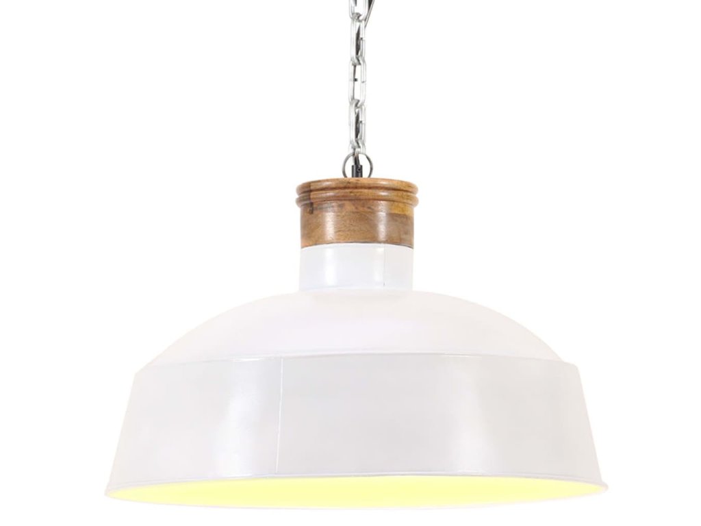 Železná stínidla v matně bílém provedení doplňuje držák z masivního mangovníkového dřeva s přírodním povrchem, takže se skvěle hodí do každého venkovského či industriálního interiéru. Do stropního světla je třeba namontovat žárovku s paticí E27 o maximálním výkonu 25 wattů. K instalaci si můžete vybírat ze žárovek E27 různých barev, abyste si doma navodili ideální atmosféru klidu a pohody. Upozornění: Jedná se o lampu v industriálním stylu s jistými nedokonalostmi na stínidlu, které lampě dávají osobitý a jedinečný surový vzhled. Žárovky nejsou součástí balení.