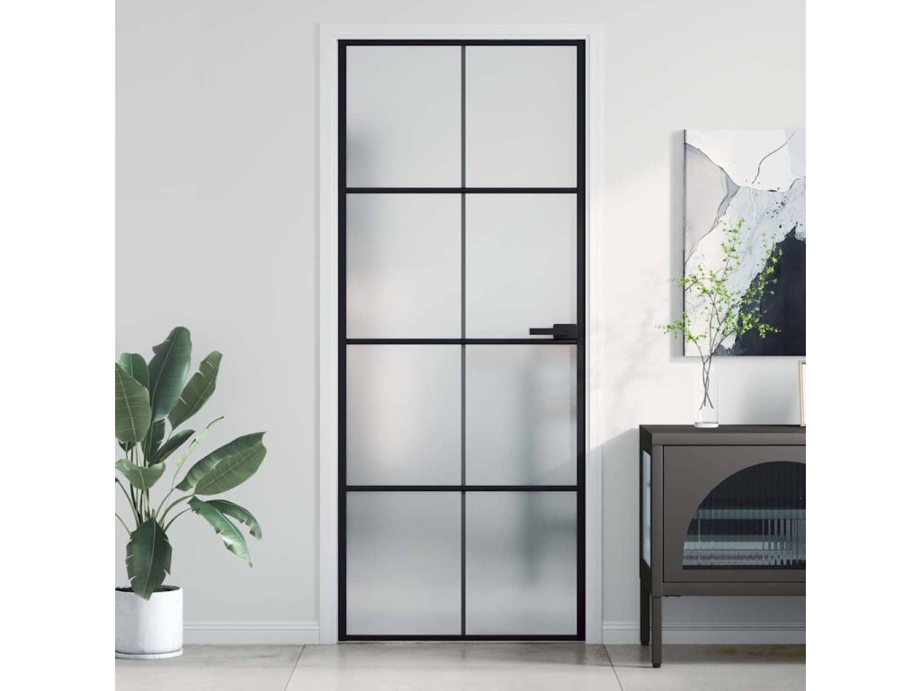 Interiérové dveře úzké černé 83x201,5 cm tvrzené sklo a hliník