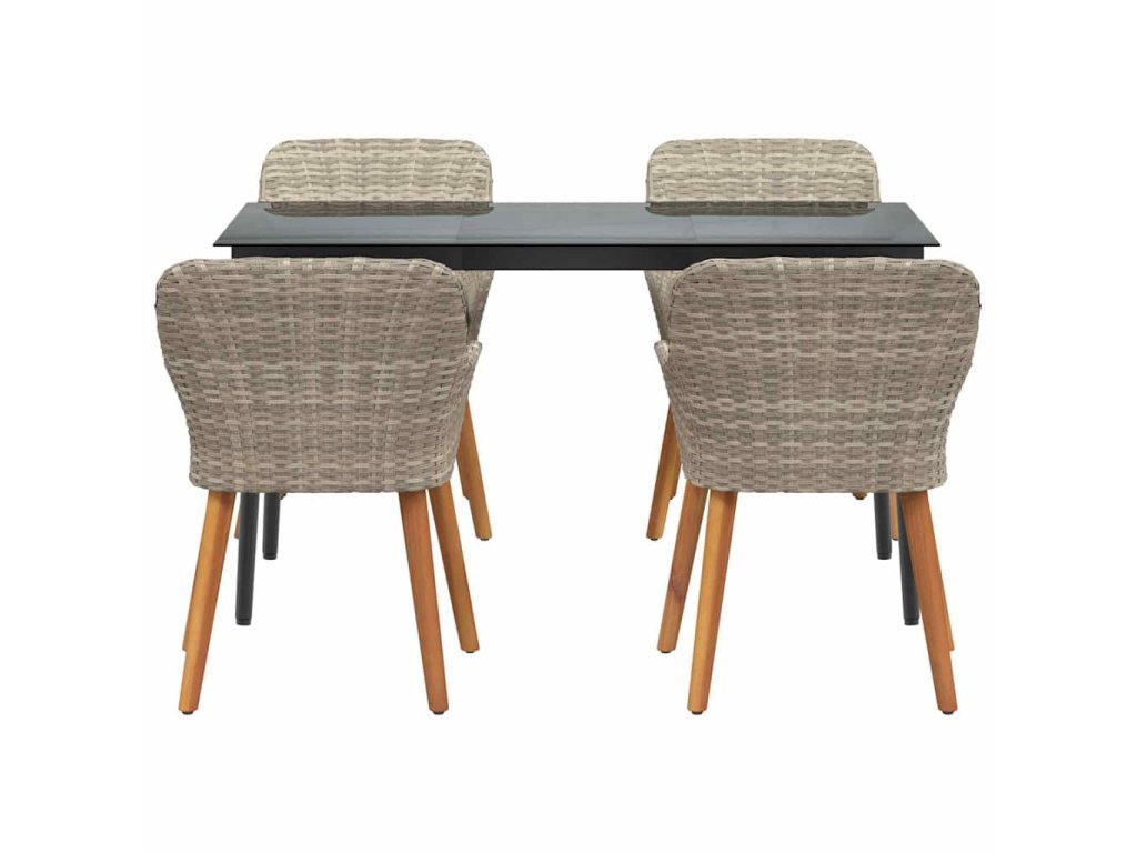 Tato stylová venkovní jídelní souprava je určena pro každého, kdo ocení eleganci a praktické funkce. Perfektně se hodí na venkovní stravování, skvěle spojuje moderní vzhled s užitečnými prvky, což z ní dělá skvělou volbu pro jakýkoli venkovní prostor. Její elegantní design a pohodlná sedadla zvou hosty, aby si užili jídlo venku a vytvořili příjemnou atmosféru pro setkání s přáteli a rodinou.