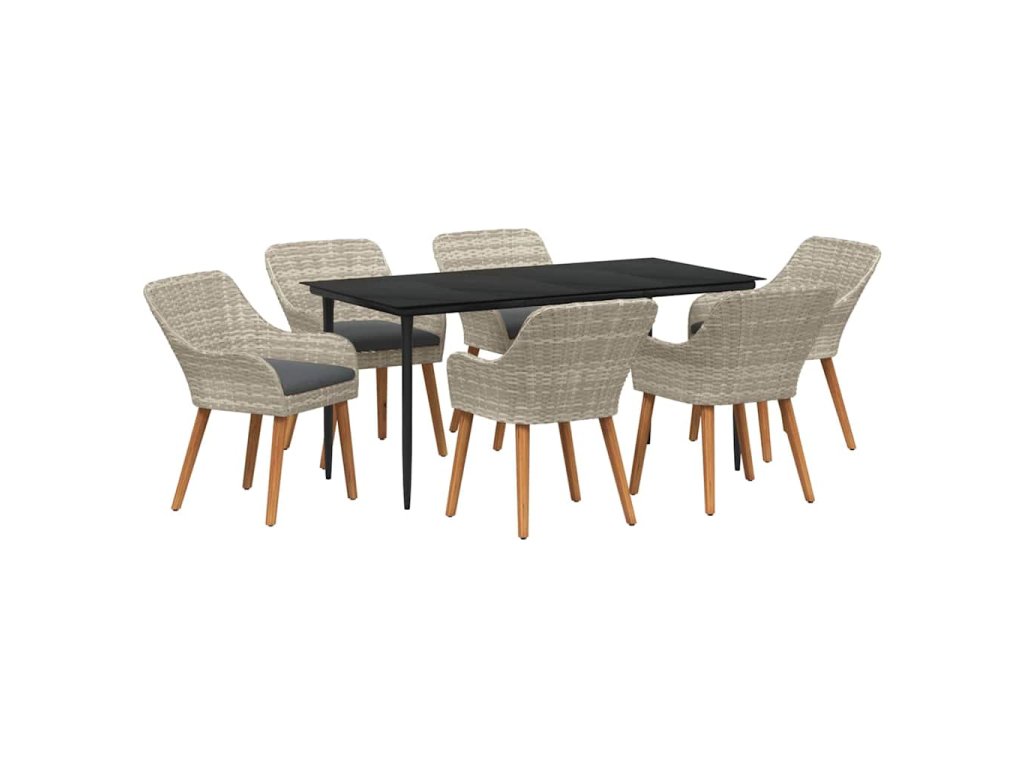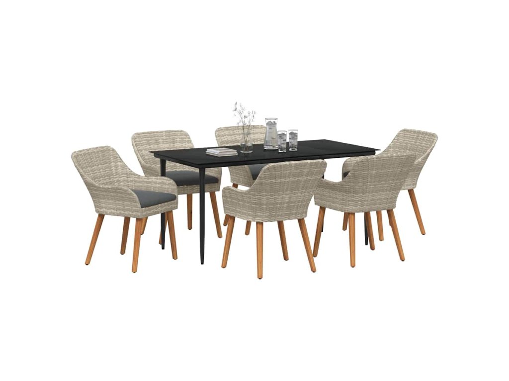 - Funkce / Design: Jídelní souprava pohodlně usadí více osob, což je skvělé pro setkání a párty. Spojuje styl a odolnost, což z ní dělá atraktivní volbu pro moderní zahrady a venkovní prostory.