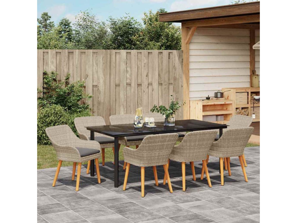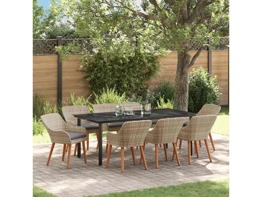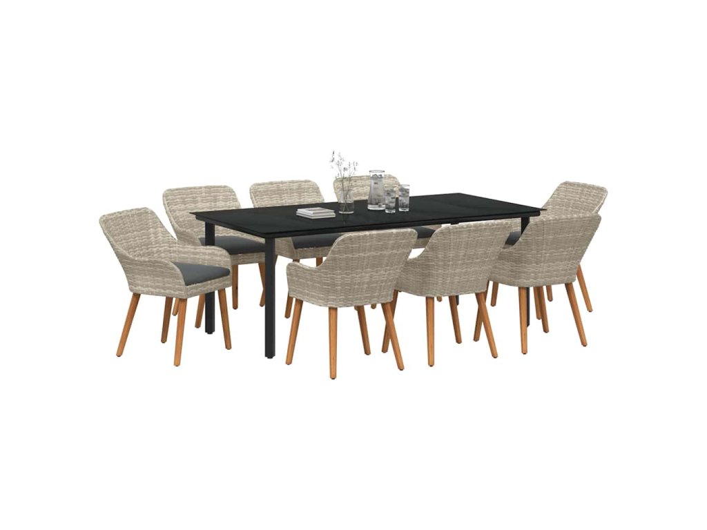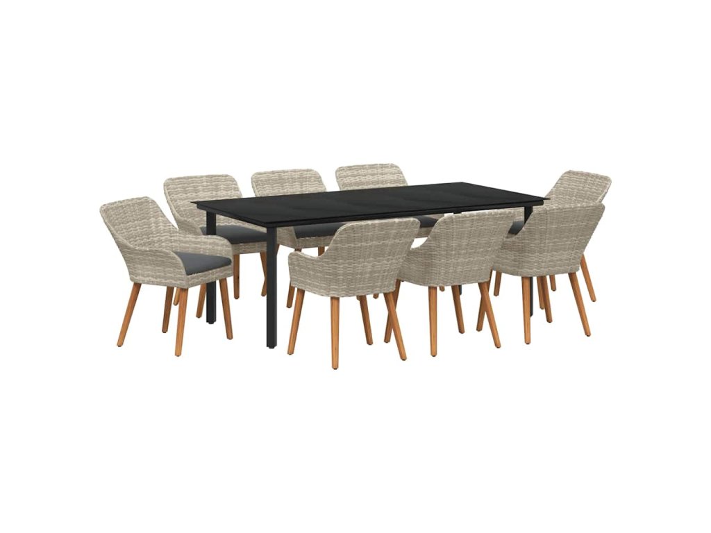 Tato stylová venkovní jídelní souprava je určena pro každého, kdo ocení eleganci a praktické funkce. Perfektně se hodí na venkovní stravování, skvěle spojuje moderní vzhled s užitečnými prvky, což z ní dělá skvělou volbu pro jakýkoli venkovní prostor. Její elegantní design a pohodlná sedadla zvou hosty, aby si užili jídlo venku a vytvořili příjemnou atmosféru pro setkání s přáteli a rodinou.