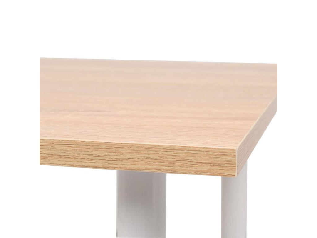 Stůl tvoří deska z kompozitního dřeva a ocelové nohy. Je stabilní, odolný a nenáročný na údržbu. Díky jeho jednoduchému, ovšem stylovému vzhledu bude vaše místnost vypadat čistě a uspořádaně. Stůl má melaminovou povrchovou úpravu, která umožňuje snadné čištění vlhkým hadříkem.