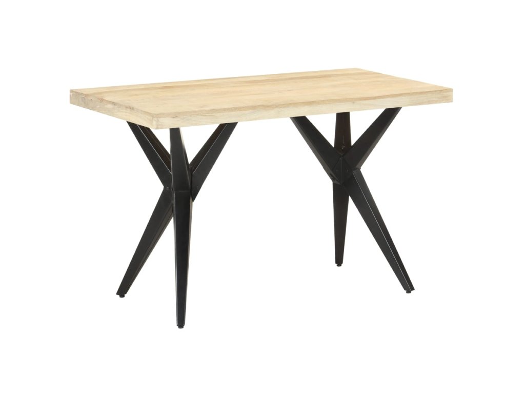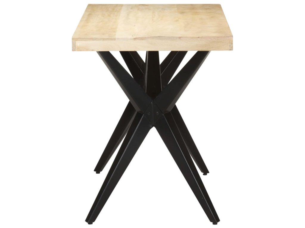 Kuchyňský stůl je vyrobený z masivního mangovníkového dřeva. Masivní mangovník je tropické tvrdé dřevo, které jednak unese značnou váhu a jednak výborně odolává působení času a neopotřebovává se. Každý kus se mírně liší od všech ostatních svou unikátní kresbou dřeva a zručným řemeslným zpracováním. Ocelové nohy s práškovým nástřikem a křížový design přidávají stolu na robustnosti. Na robustní stolní desce můžete servírovat lahodné pokrmy a nápoje a vystavit si různé dekorace.