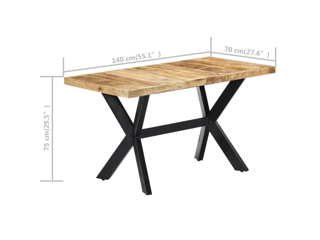 Jídelní stůl 140 x 70 x 75 cm masivní hrubé mangovníkové dřevo