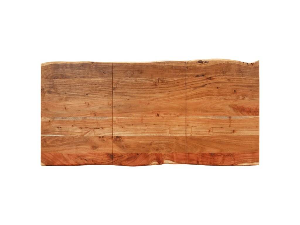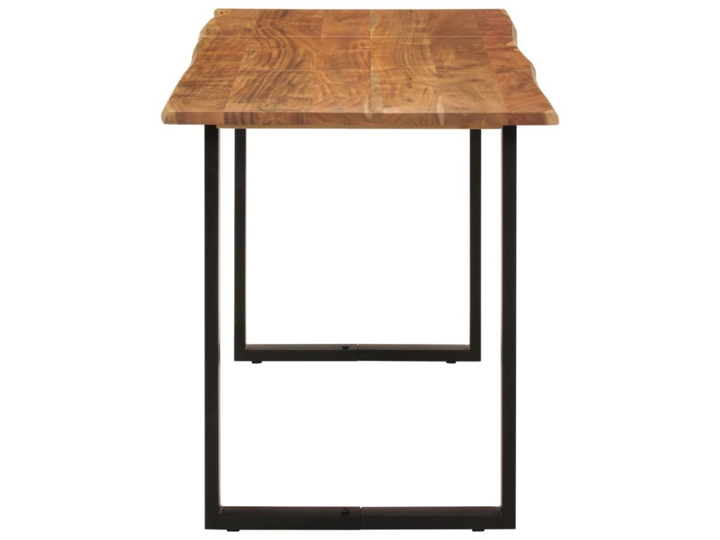 Tento jídelní stůl je vyrobený z masivní akácie, tropického tvrdého dřeva, které je oceňované pro svou pevnost a bohatou kresbu. Živý tvar a okraje stolní desky jsou záměrně opracované tak, aby do vašeho interiéru přinesly původní charakter a přirozený dojem stromu. Každý krok procesu se provádí s největší péčí, ať už jde o leštění, natírání nebo lakování. Ocelové nohy doplňují industriální vzhled a přispívají k robustní konstrukci.