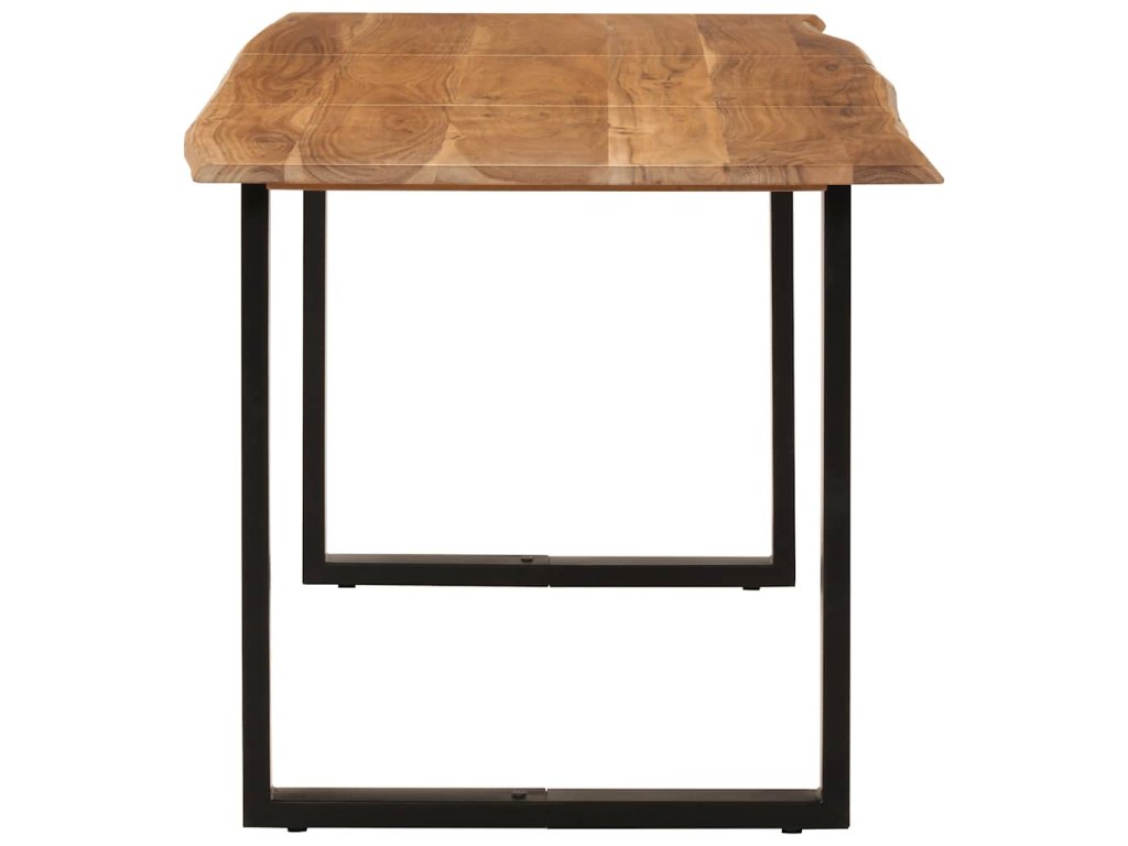 Tento jídelní stůl je vyrobený z masivní akácie, tropického tvrdého dřeva, které je oceňované pro svou pevnost a bohatou kresbu. Živý tvar a okraje stolní desky jsou záměrně opracované tak, aby do vašeho interiéru přinesly původní charakter a přirozený dojem stromu. Každý krok procesu se provádí s největší péčí, ať už jde o leštění, natírání nebo lakování. Ocelové nohy doplňují industriální vzhled a přispívají k robustní konstrukci.