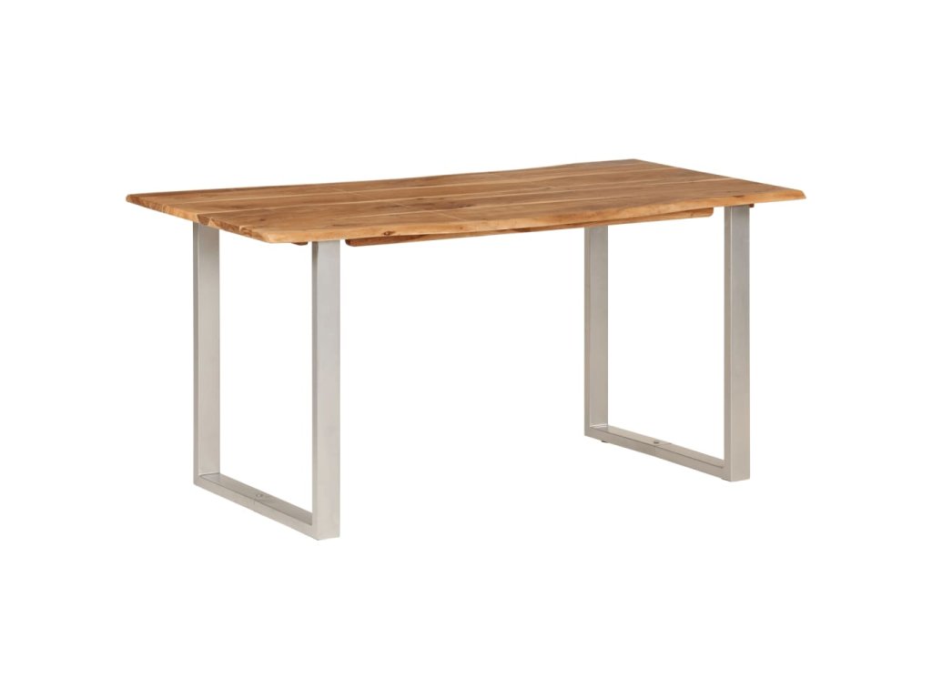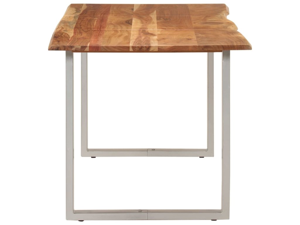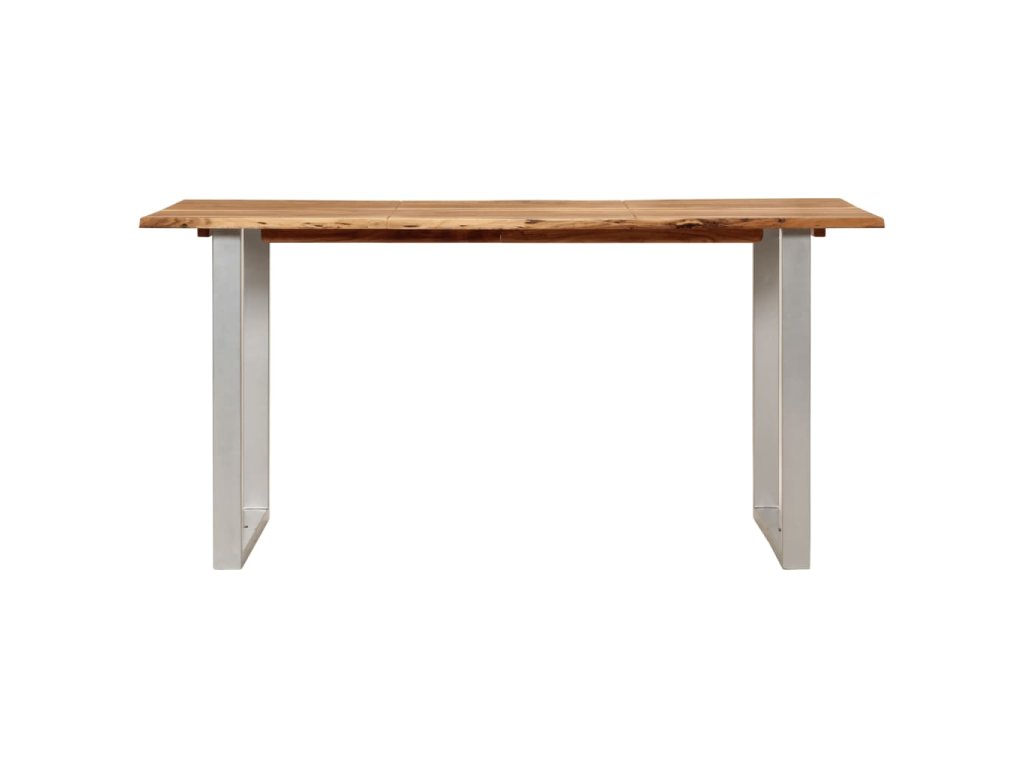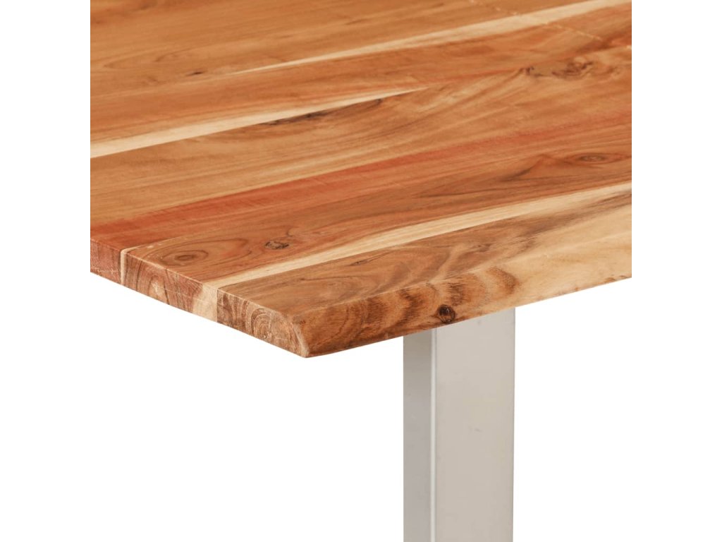 Tento jídelní stůl je vyrobený z masivní akácie, tropického tvrdého dřeva, které je oceňované pro svou pevnost a bohatou kresbu. Živý tvar a okraje stolní desky jsou záměrně opracované tak, aby do vašeho interiéru přinesly původní charakter a přirozený dojem stromu. Každý krok procesu se provádí s největší péčí, ať už jde o leštění, natírání nebo lakování. Ocelové nohy doplňují industriální vzhled a přispívají k robustní konstrukci.