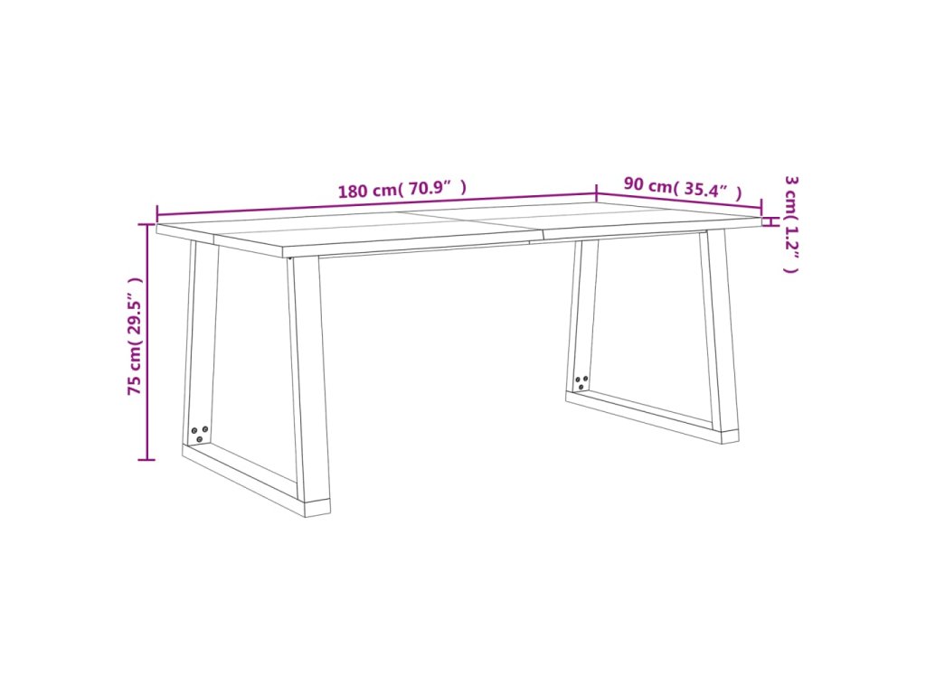 Tento jídelní stůl s deskou z masivního akáciového dřeva a stabilními nohami ve tvaru písmene U je skvělým doplňkem vaší jídelny nebo kuchyně.
