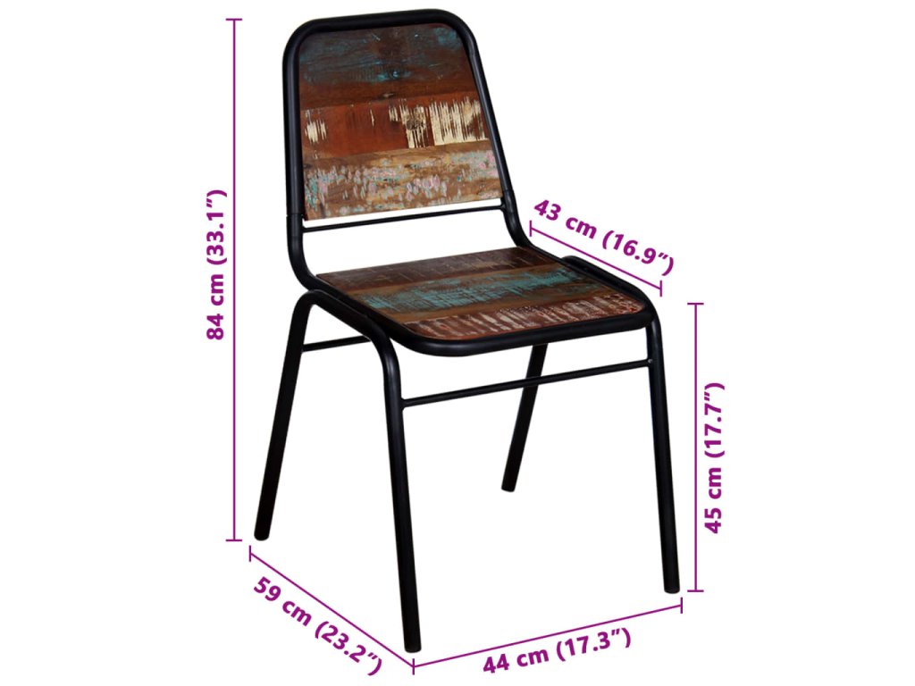 Tyto židle ve vintage stylu jsou vyrobené z masivního recyklovaného dřeva, což znamená, že každý kus nábytku je jedinečný a lehce se odlišuje od ostatních. Nábytek vyrobený z použitého dřeva má vlastnosti různých druhů dřeva, jako je teak, mangovník a akácie. Recyklované dřevo je masivní, bytelné, odolné a krásné. Známky opotřebení a odhalená struktura dřeva dodávají každému kusu jedinečnost a lehkou odlišnost od ostatních kusů.