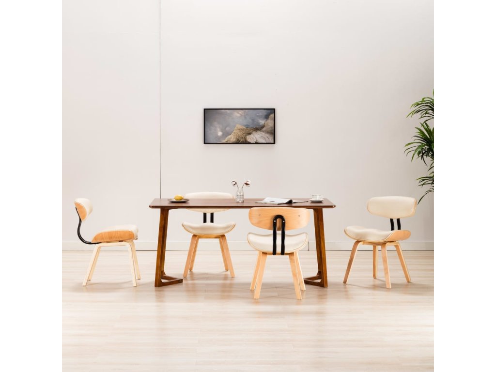 Jídelní židle 4 ks krémové ohýbané dřevo a umělá kůže