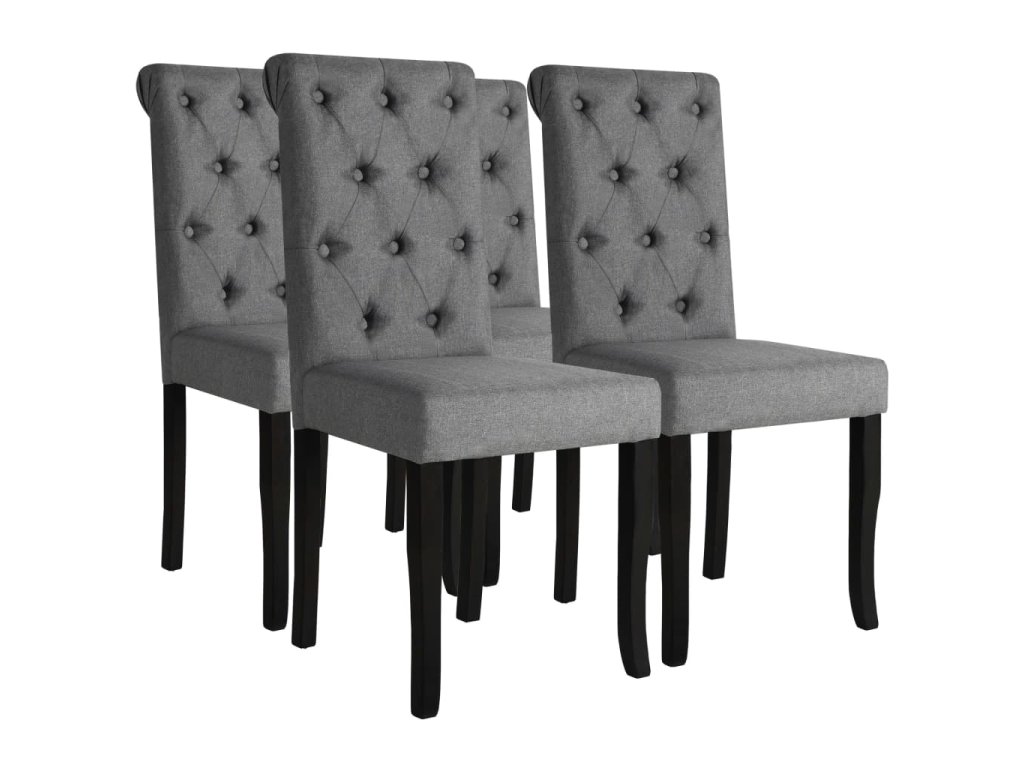 Díky jemnému textilnímu čalounění a pěnové výplni jsou tyto židle nesmírně pohodlné. Jejich opěradla se navíc pyšní ozdobnými knoflíčky, které jim dodávají klasický šmrnc.