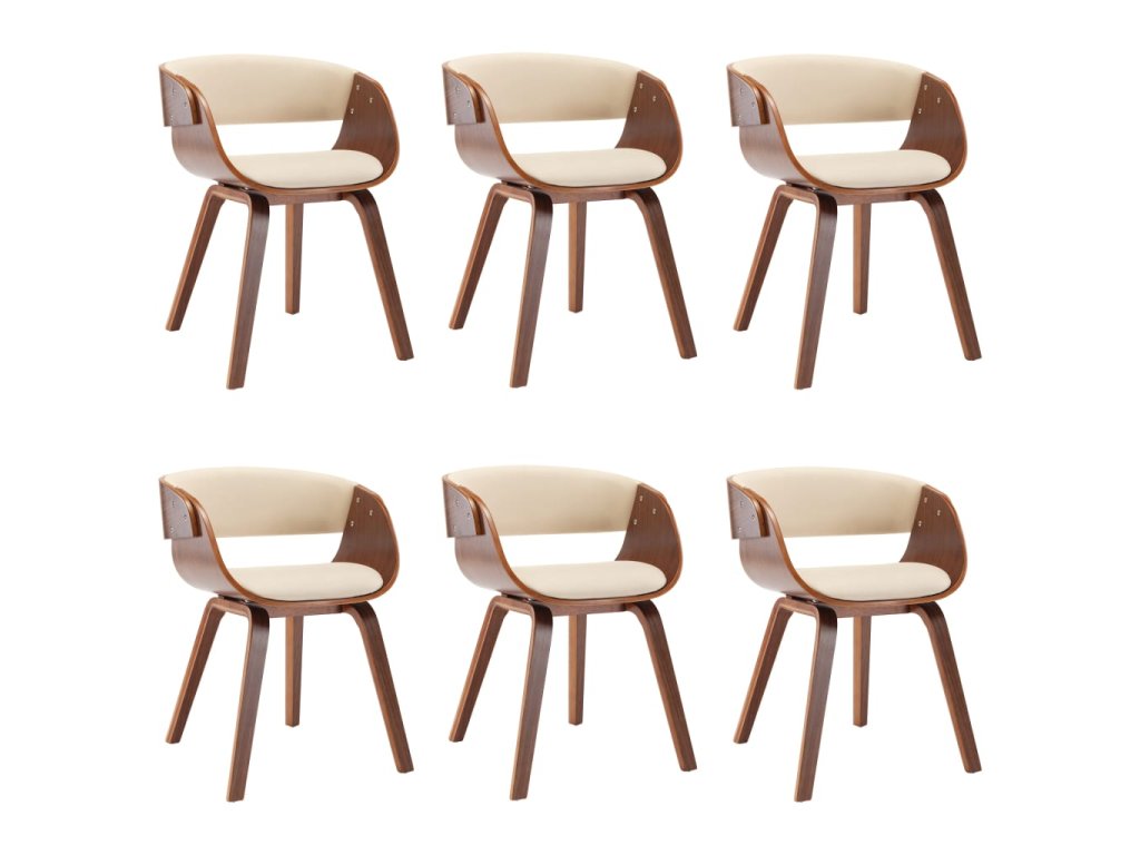 Jídelní židle 6 ks krémové ohýbané dřevo a umělá kůže