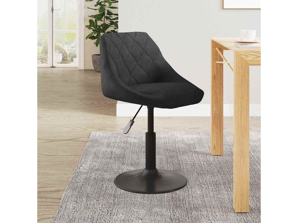 Židle je čalouněná měkkým sametem, který je příjemný na dotek, a nabízí tedy optimální komfort. Ocelový rám s černým práškovým nástřikem zaručuje mimořádnou odolnost. Výšku židle snadno upravíte pomocí mechanismu s plynovým pístem. Jídelní židle představuje dokonalý doplněk do každého funkčního baru či jídelny. Židle se navíc otáčí o 360 stupňů, což jí dodává skvělou flexibilitu.
