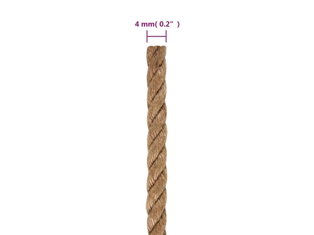 - Přírodní materiál: Toto jutové lano je pevně spletené ze 3 jemnějších pramenů 100% přírodní juty, je silné, pružné, odolné vůči povětrnostním vlivům a bezpečné.