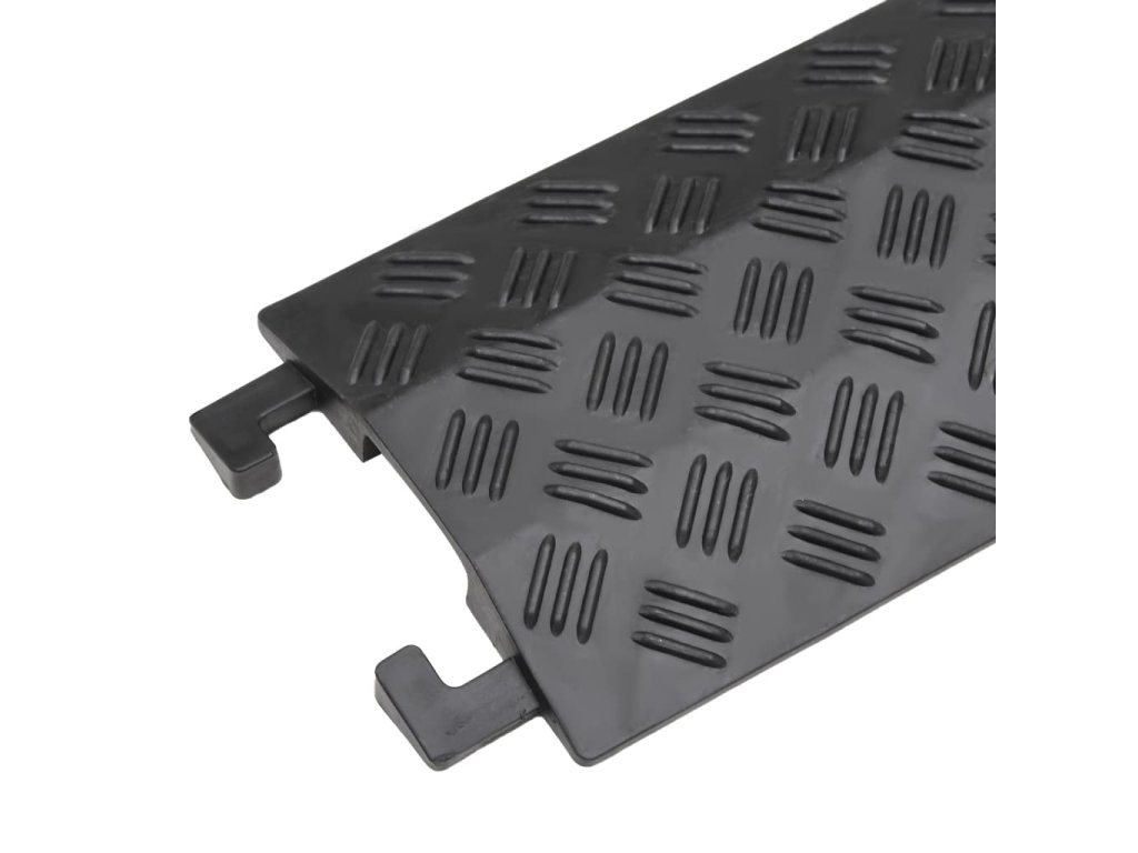 - Praktické chrániče kabelů: Tyto ochranné mosty chrání vaše kabely a odolají maximální zátěži až 2 tuny. Kabely lze snadno umístit nebo vyjmout po odklopení horního krytu.
