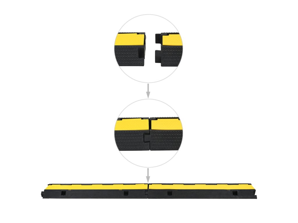 Tato sada 2 kabelových ochranných přejezdů s 1 kanálkem je speciálně navržena pro zakrytí a ochranu vedení, kabelů, hadic, trubek nebo potrubí.