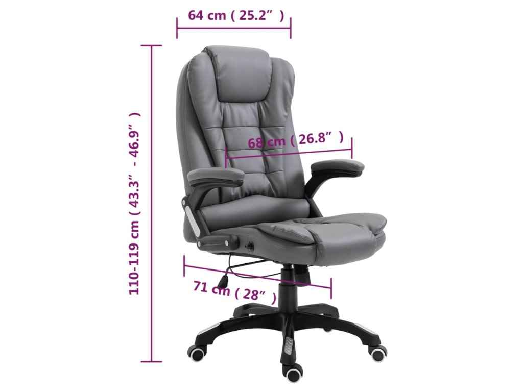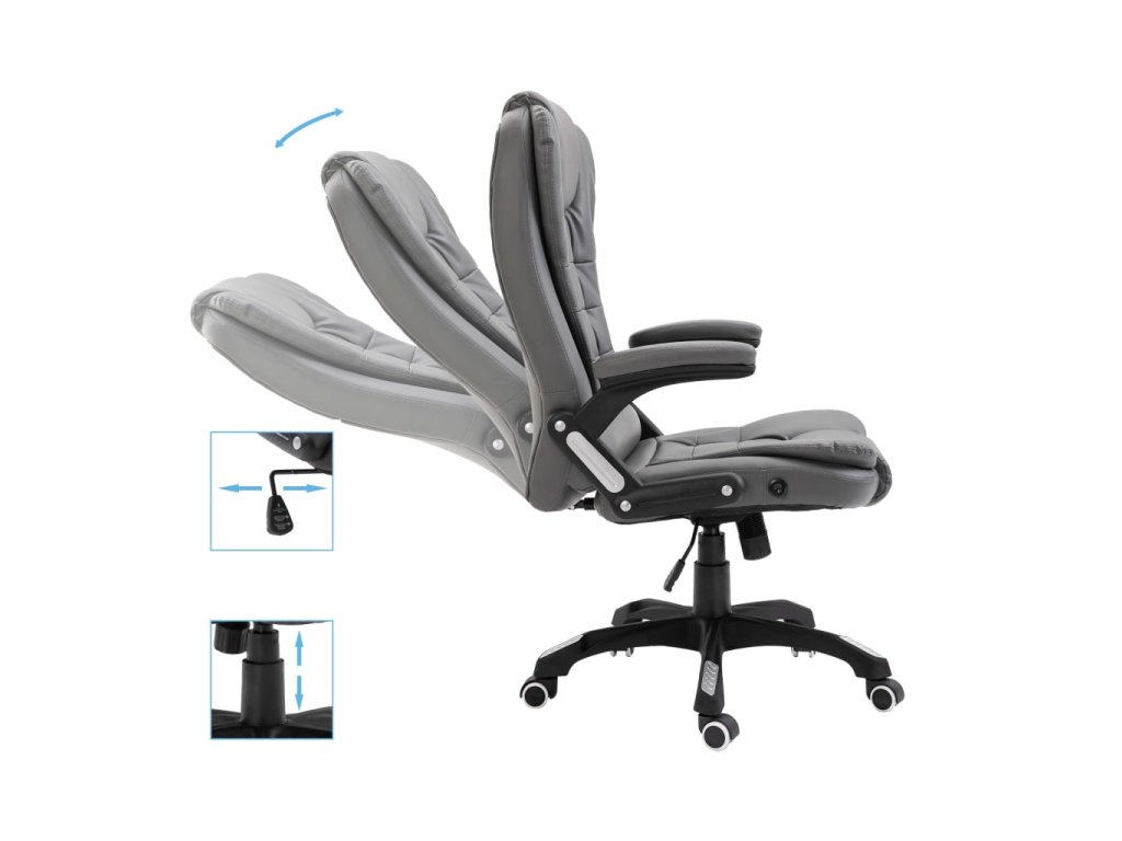 Design s vysokým opěradlem a ergonomicky polstrovaným opěradlem, područkami a sedákem vám umožní pohodlně pracovat i několik hodin. Má nastavitelný design, takže si židli můžete přizpůsobit výšce vašeho stolu, aby se vám pohodlněji sedělo a vaše páteř byla ve zdravé pozici. Design rovněž umožňuje otáčet židli o 360° stupňů. Židle je posazená na 5 nylonových kolečkách, a dá se tudíž bez námahy či hluku přesouvat z místa na místo.
