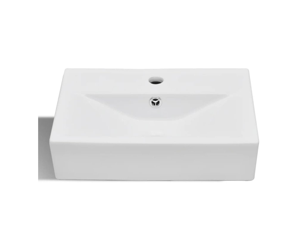 Keramické umyvadlo s otvorem na baterii a přepadem bílé obdélníkové