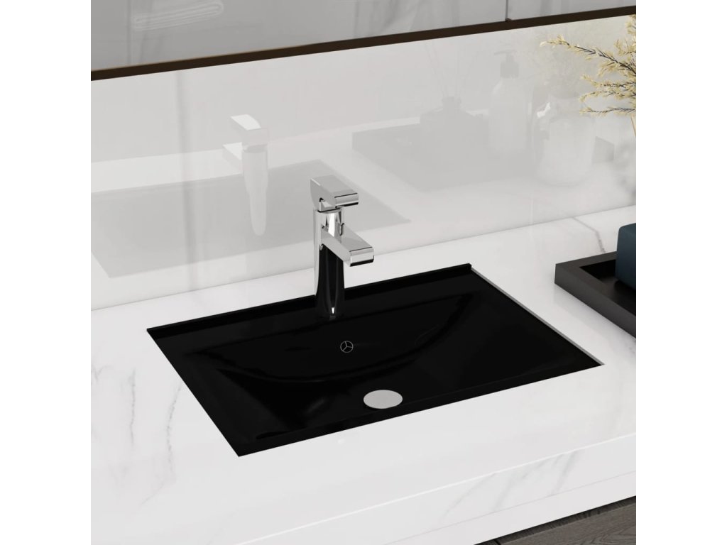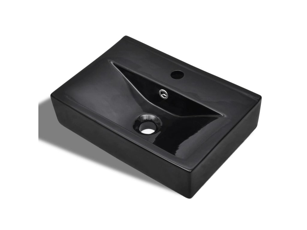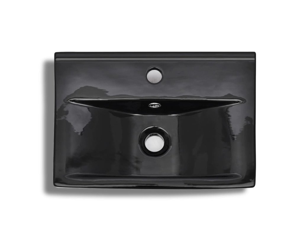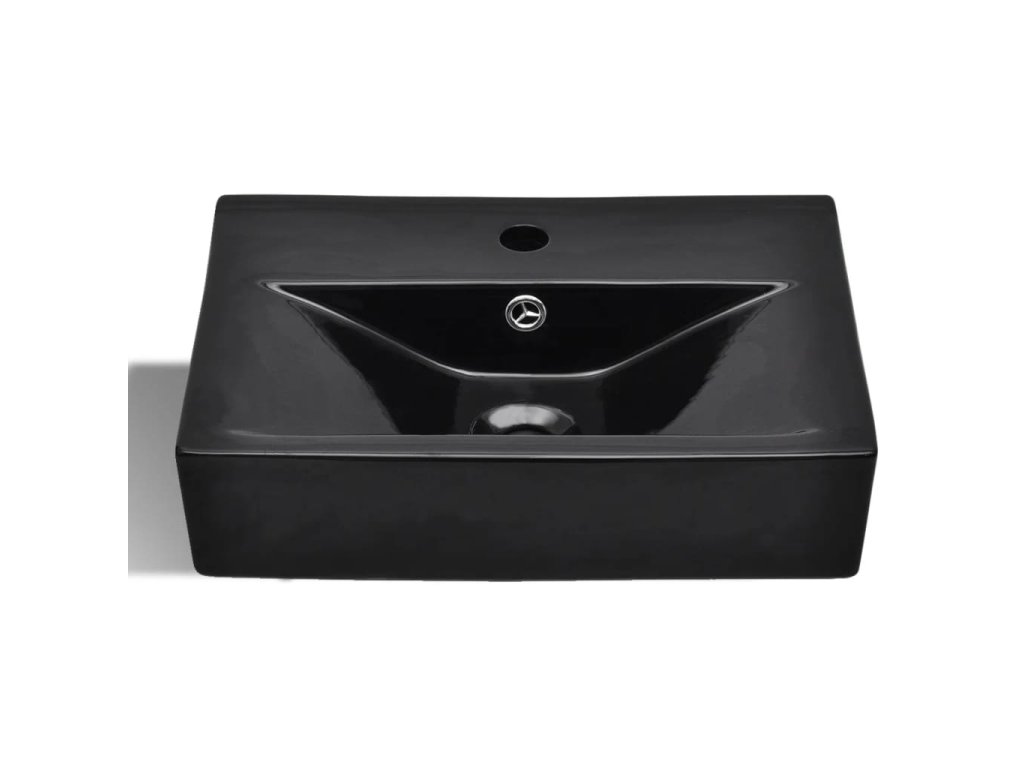 Keramické umyvadlo s otvorem na baterii a přepadem černé obdélníkové