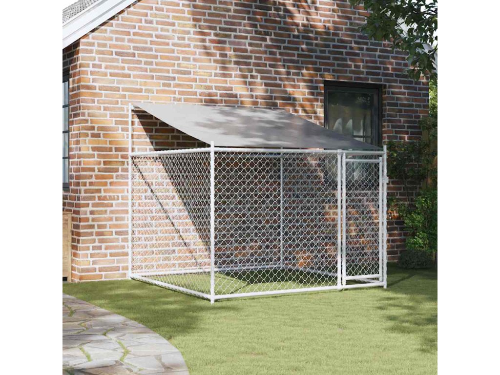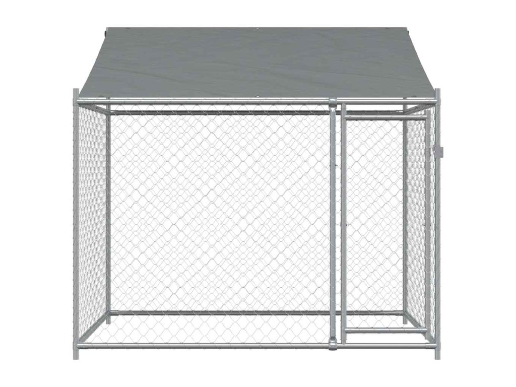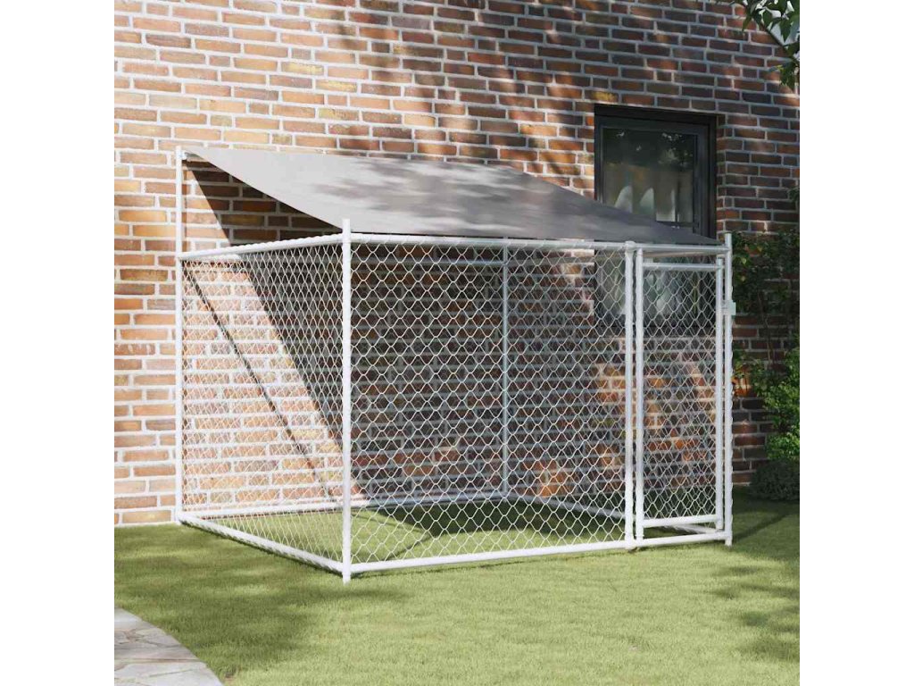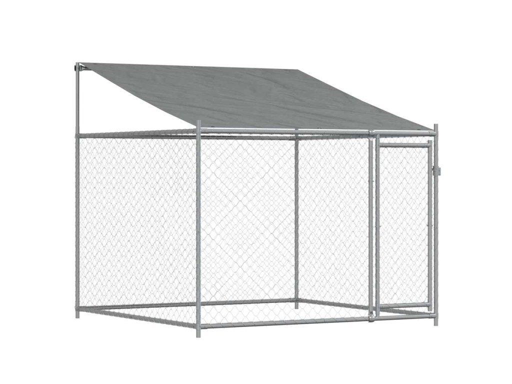 Klec pro psy se střechou a dvířky šedá 2x2x2 m pozinkovaná ocel