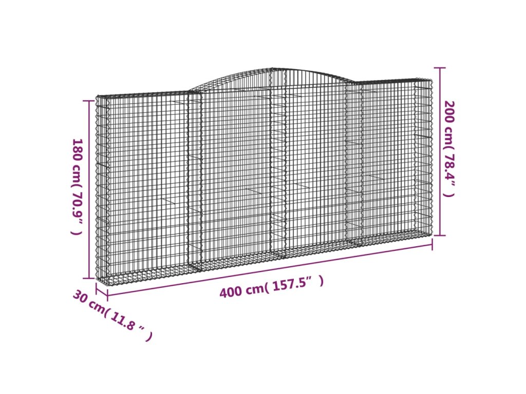 Klenuté gabionové koše 3 ks 400x30x180/200cm pozinkované železo