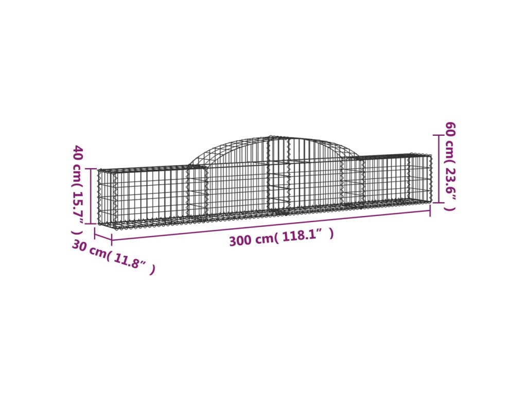 Klenuté gabionové koše 4 ks 300x30x40/60 cm pozinkované železo