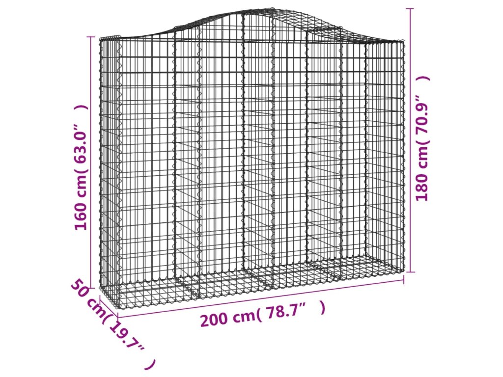 Klenuté gabionové koše 7 ks 200x50x160/180cm pozinkované železo