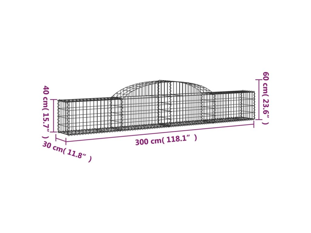 Klenuté gabionové koše 7 ks 300x30x40/60 cm pozinkované železo