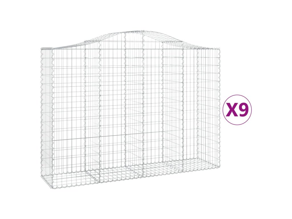 Klenuté gabionové koše 9 ks 200x50x140/160cm pozinkované železo