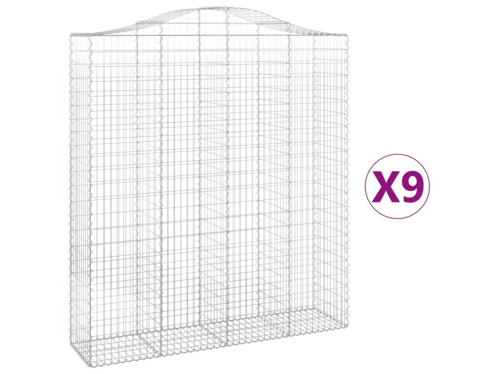 Klenuté gabionové koše 9 ks 200x50x220/240cm pozinkované železo