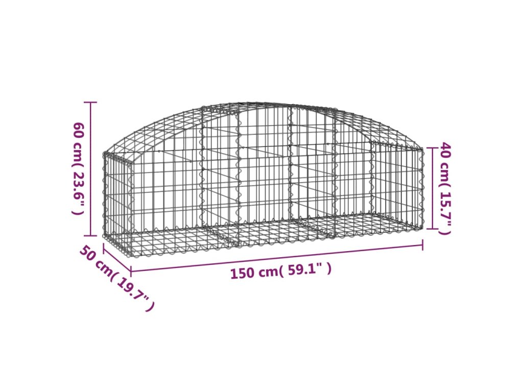 Klenutý gabionový koš 150 x 50 x 40/60 cm pozinkované železo