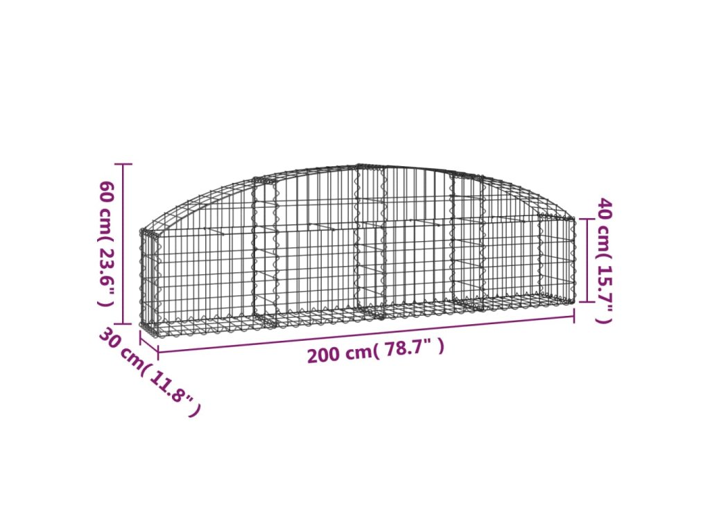 Klenutý gabionový koš 200 x 30 x 40/60 cm pozinkované železo