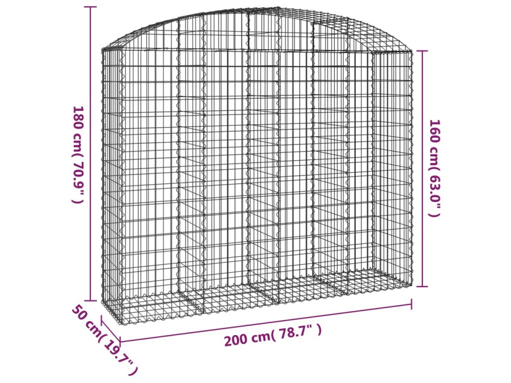 Klenutý gabionový koš 200 x 50 x 160/180 cm pozinkované železo