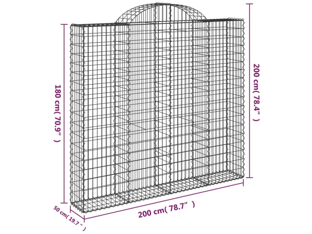 Klenutý gabionový koš 200 x 50 x 180/200 cm pozinkované železo