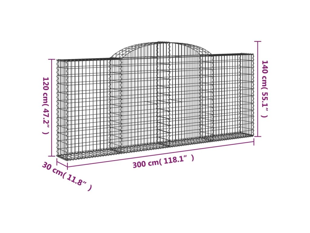 Klenutý gabionový koš 300 x 30 x 120/140 cm pozinkované železo