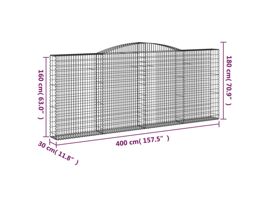 Klenutý gabionový koš 400 x 30 x 160/180 cm pozinkované železo