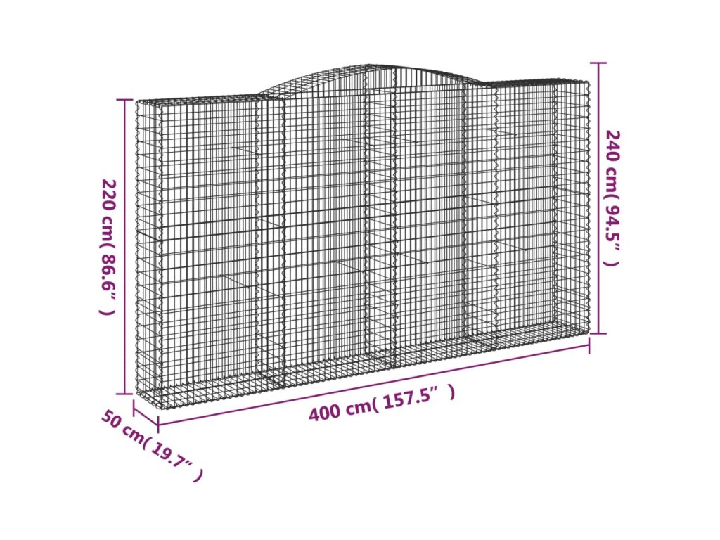 Klenutý gabionový koš 400 x 50 x 220/240 cm pozinkované železo