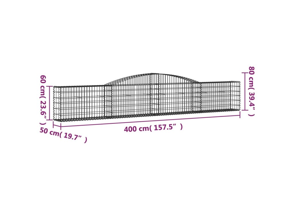 Klenutý gabionový koš 400 x 50 x 60/80 cm pozinkované železo
