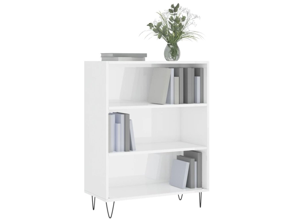 Knihovna bílá s vysokým leskem 69,5x32,5x90 cm kompozitní dřevo